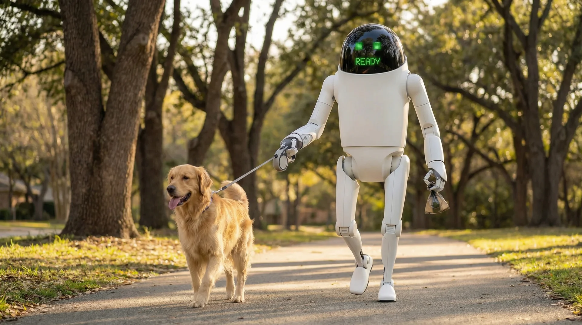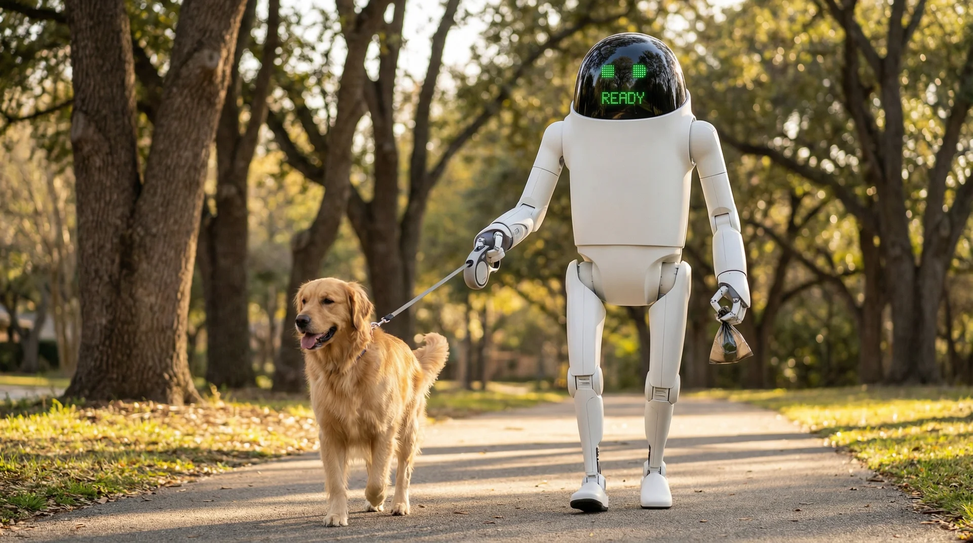 The Canis-X1 is a specialized bipedal android designed specifically for canine exercise and safety. Utilizing a low-center-of-gravity digitigrade leg configuration and active gyroscopic stabilization, it withstands sudden lateral forces from leashed animals while navigating complex urban terrains. The unit features real-time behavioral analysis to adapt walking pace and route based on the dog's stress levels and physical needs.