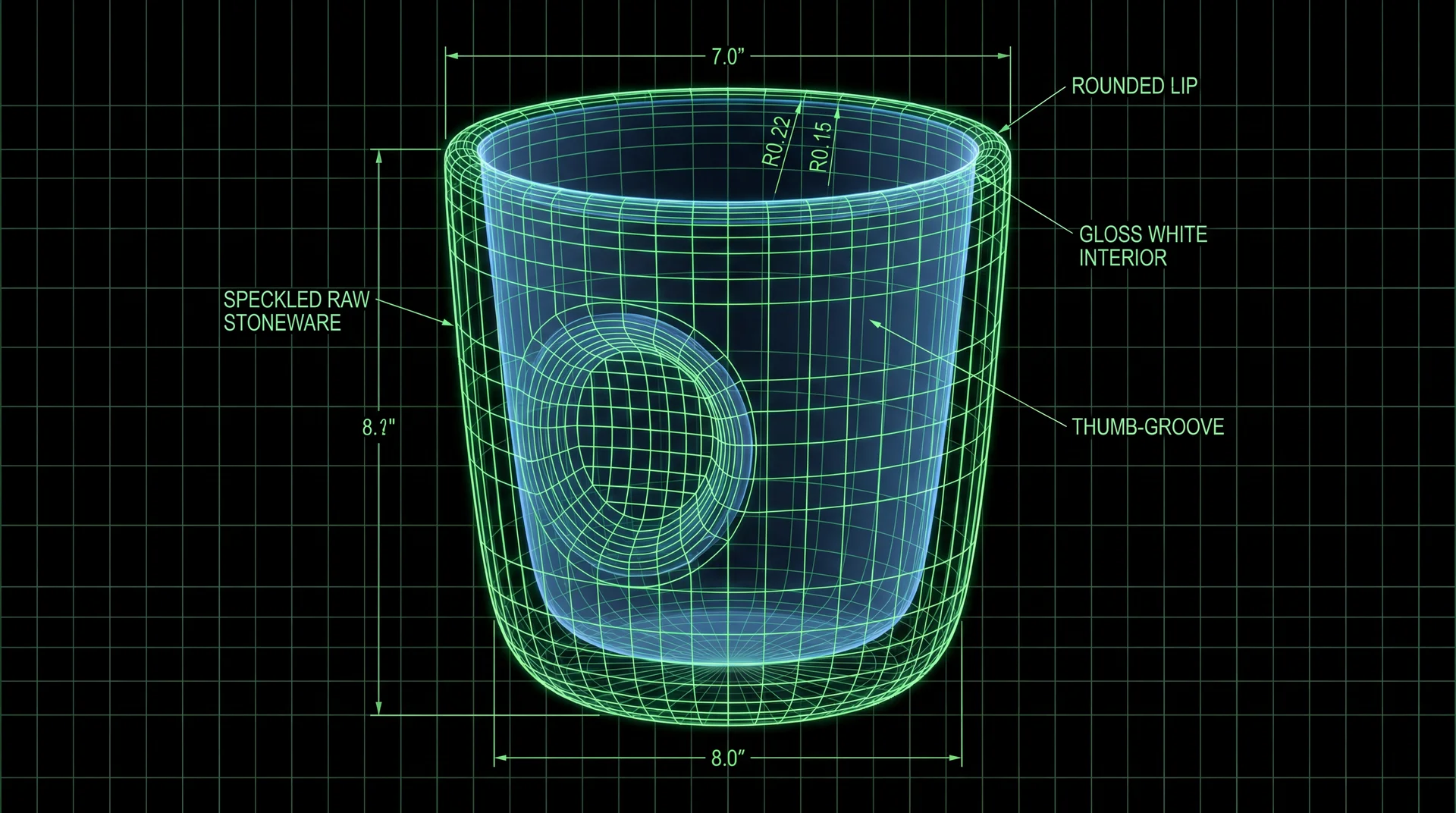 The Kanso Vessel 350 is a premium stoneware mug designed for the modern specialty coffee consumer who values tactile experience and thermal retention. By utilizing a high-fire stoneware body with a dual-texture finish—raw clay exterior and sanitary gloss interior—this product bridges the gap between artisanal craft and scalable manufacturing. The design prioritizes ergonomic balance and stackability, targeting the mid-to-high-end lifestyle market with a unit cost structure optimized for direct-to-consumer margins.