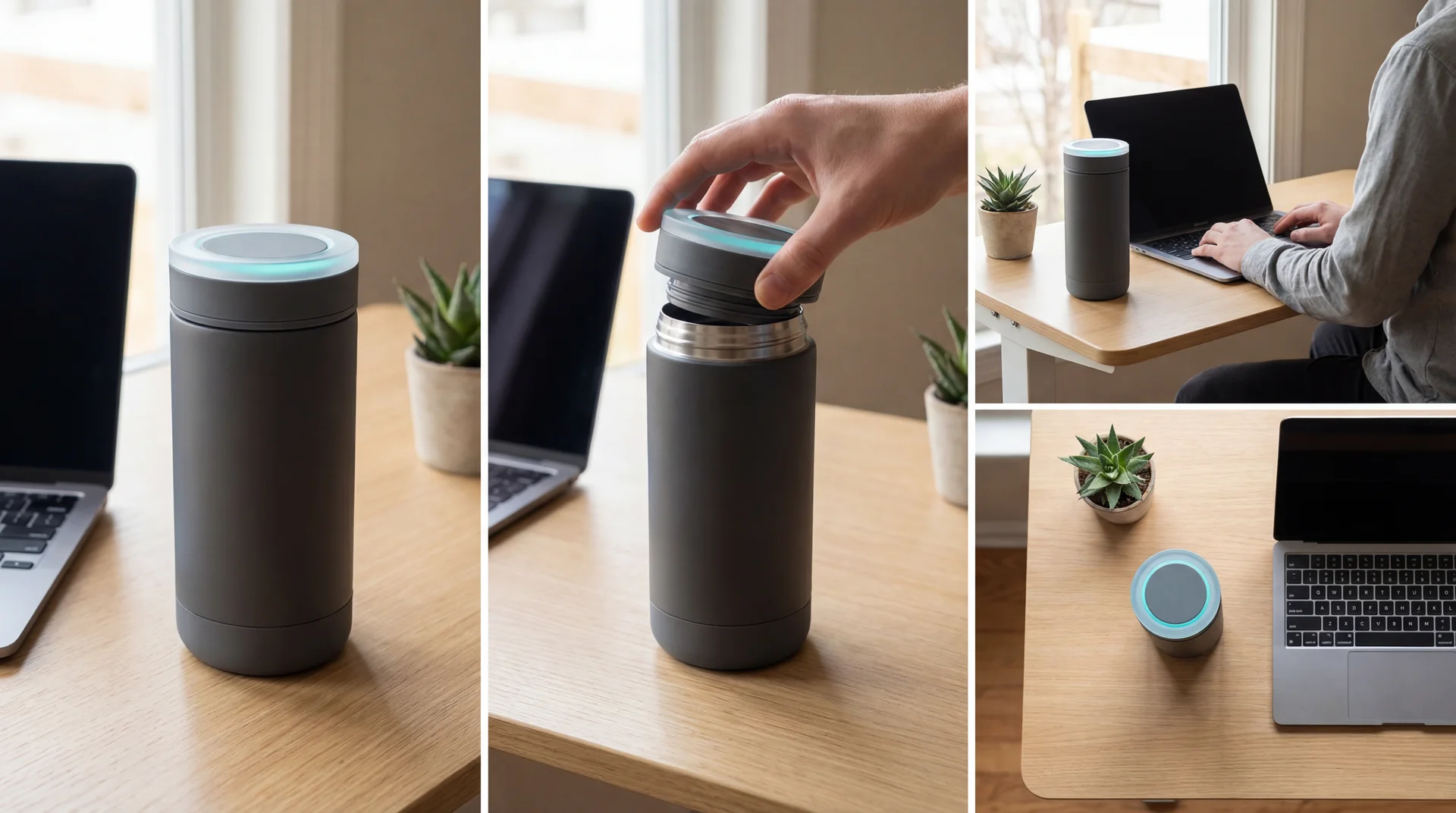 The LumaFlow H2O is a vacuum-insulated smart water bottle designed to seamlessly integrate hydration habits into a user's daily workflow through intuitive visual cues. By housing all electronics within a hermetically sealed, dishwasher-safe lid, the design minimizes manufacturing complexity while maximizing durability and hygiene. It features a capacitive liquid level sensor and a 3-axis accelerometer to track intake with >95% accuracy, syncing via Bluetooth LE to a companion app for personalized hydration goals.