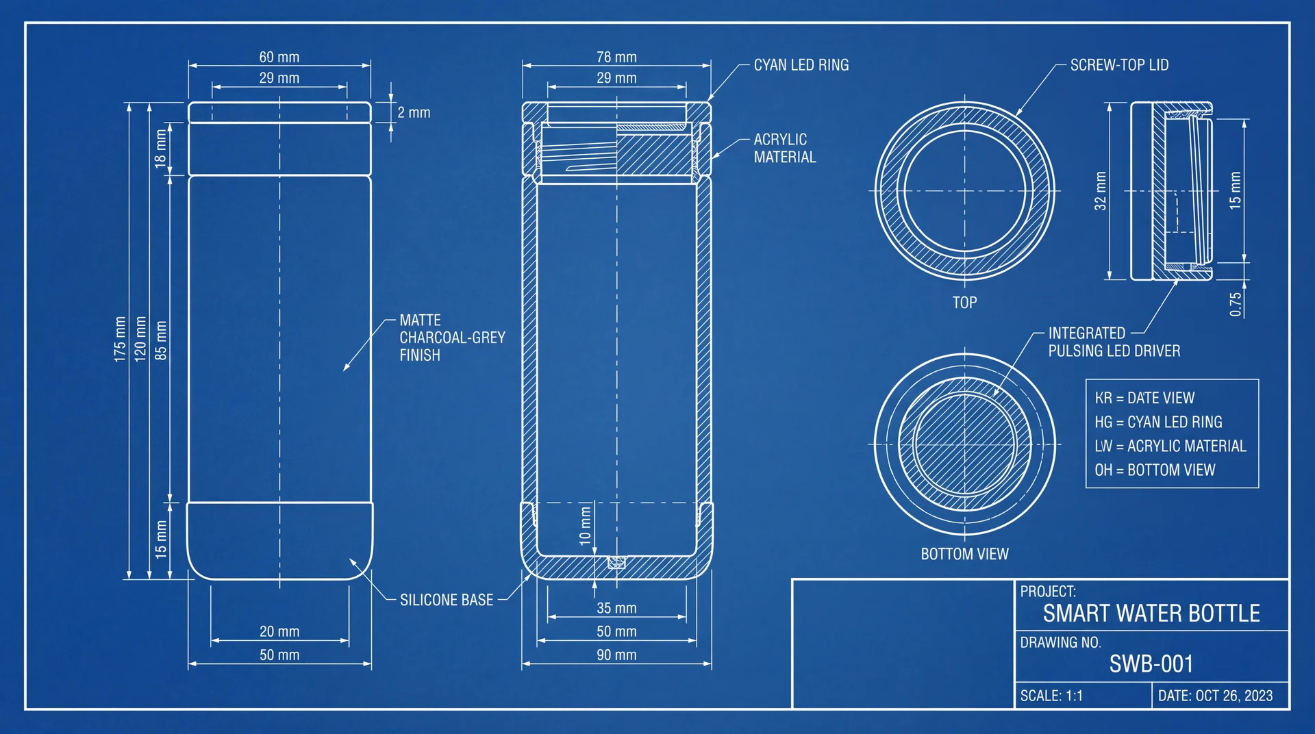 | Smart Lid Housing (Top & Bottom) | Injection Molded BPA-Free Tritan & ABS | $1.20 |