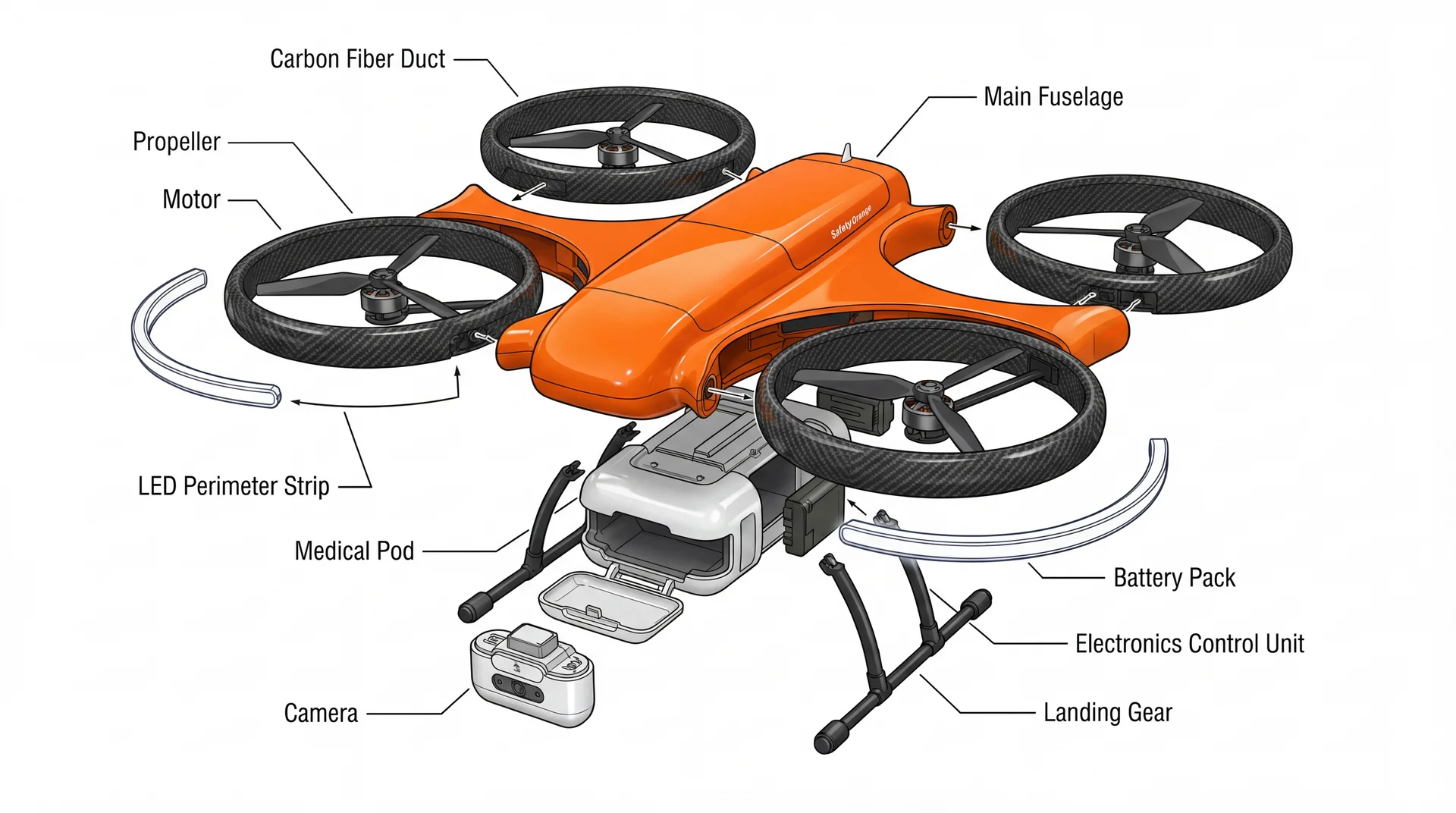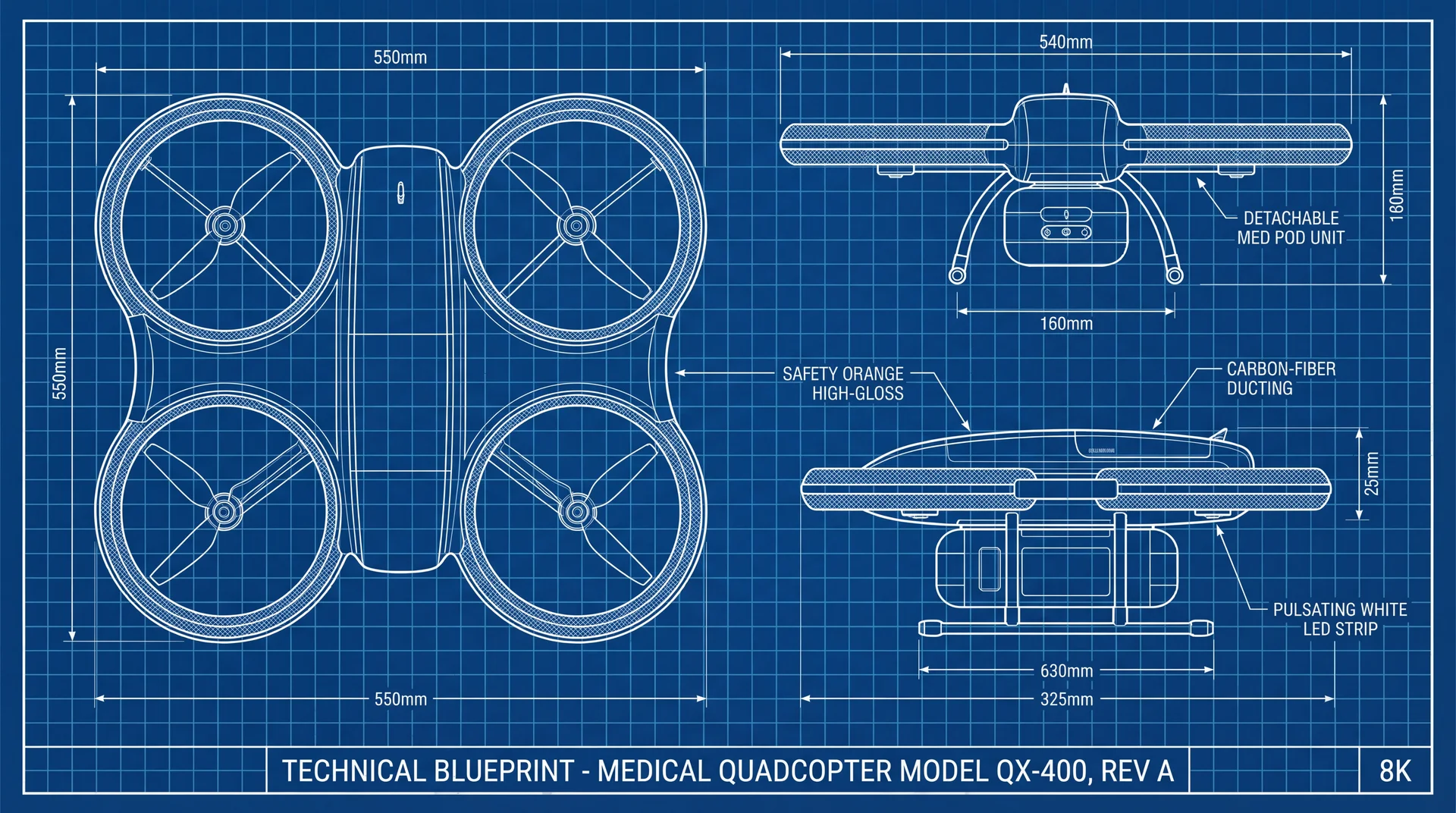 The ResQ-1 Sprint is a decentralized rapid-response drone network designed to deliver a proprietary, ultra-lightweight mechanical CPR and AED unit to any coordinate in New York City within 60 seconds. Utilizing a grid of 150+ autonomous 'SkyDock' rooftop stations, the system bridges the critical gap between cardiac arrest onset and ambulance arrival, potentially increasing survival rates from <10% to over 50%. The drone features a custom carbon-fiber automated chest compression device that integrates directly into the airframe to minimize weight.